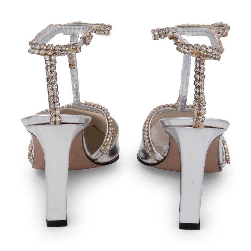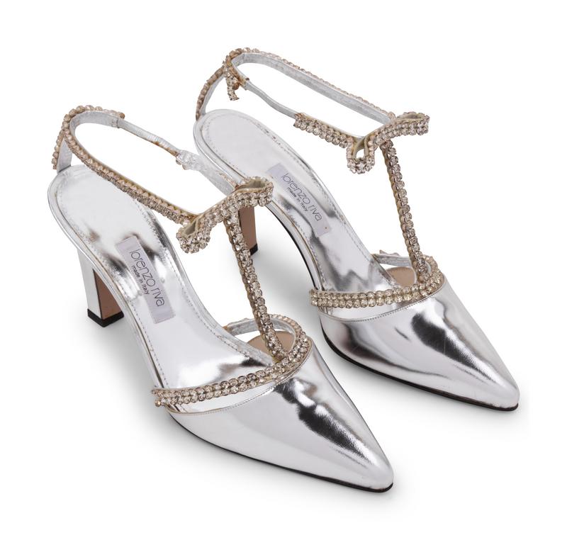 -One pair of Riva silver leather heels with rhinestones, size 40