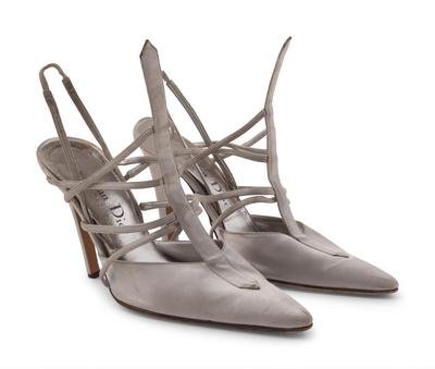 -One pair of Dior silver satin heels, size 10