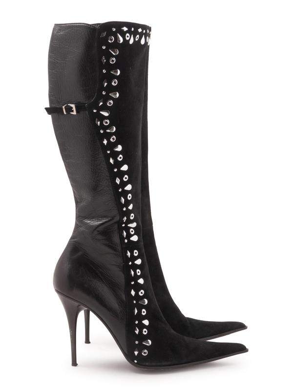 -One pair of Mayis black suede boots with silver studs, size 40