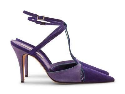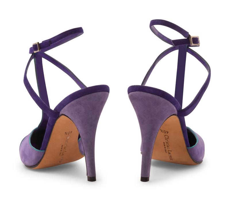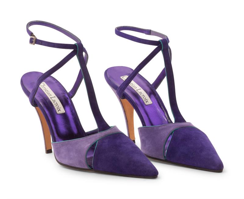 -One pair of Lacroix purple suede heels, size 40.5