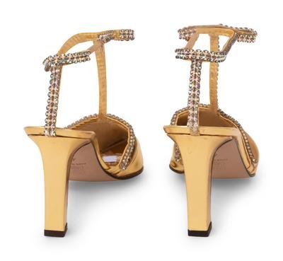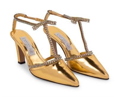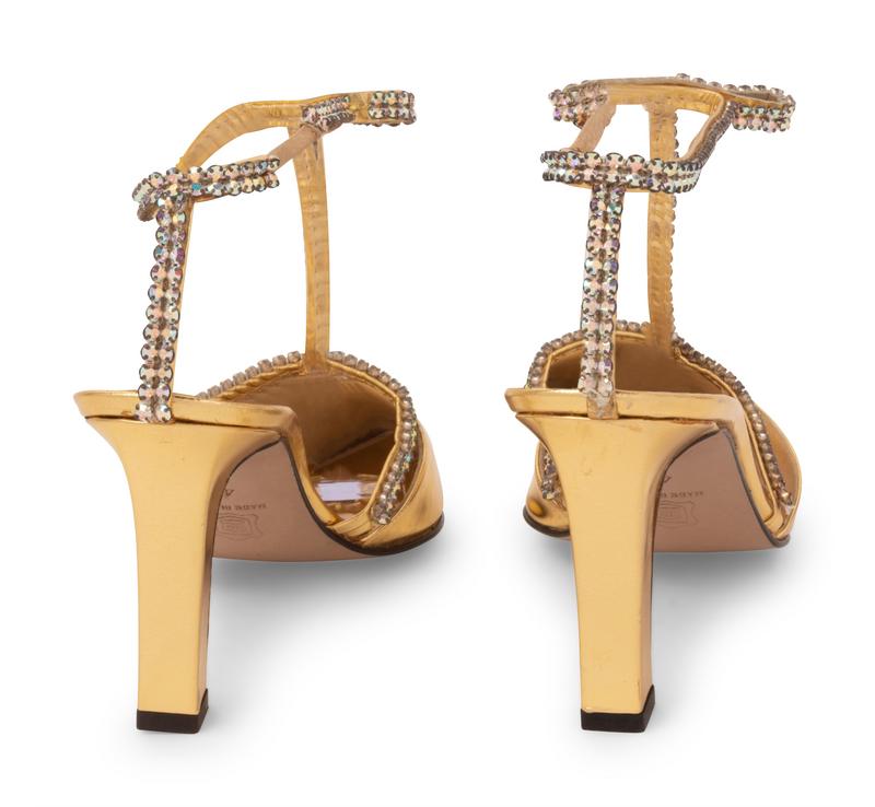 -One pair of Riva gold leather heels with rhinestones, size 40