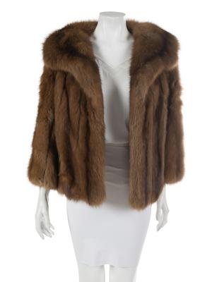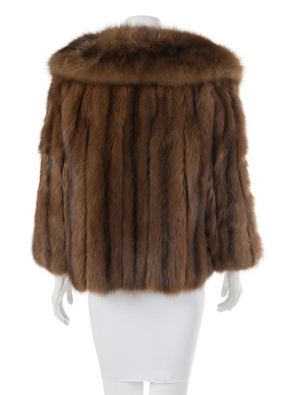 Clucth coat of brown mink with wide lapels and 3/4 length sleeves.