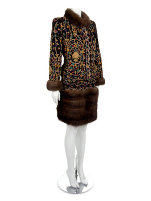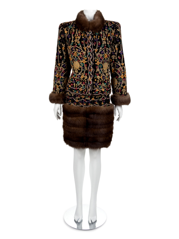 Revillon Haute Couture Velour and Sable Suit and Hat, 1994