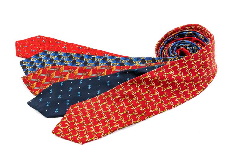 Two Gucci ties, two Ferragamo ties and one Acquascutum tie.