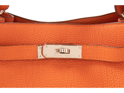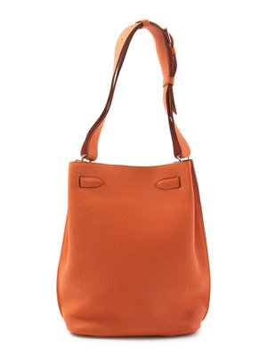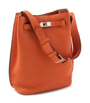 Orange leather So Kelly bag with an adjustable strap and goldtone hardware.