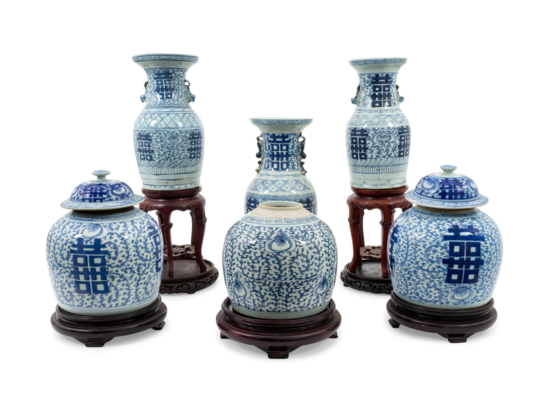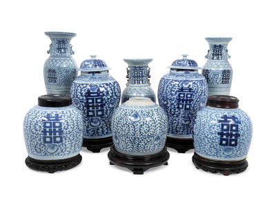 A Group of Eight Chinese Export Blue and White Porcelain Jars and Vases