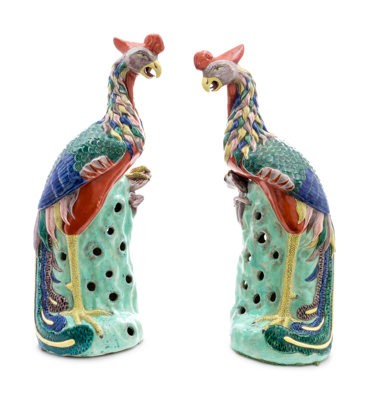 A Pair of Chinese Export Porcelain Phoenix Birds