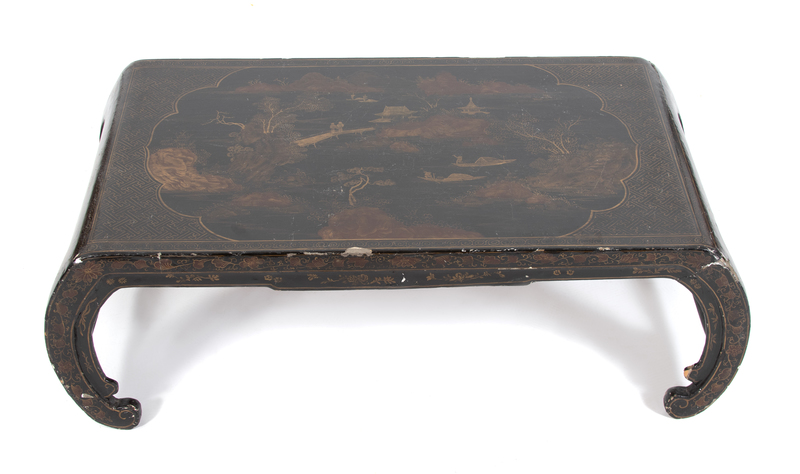 A Chinese Export Gilt-Decorated Black Lacquer Low Table