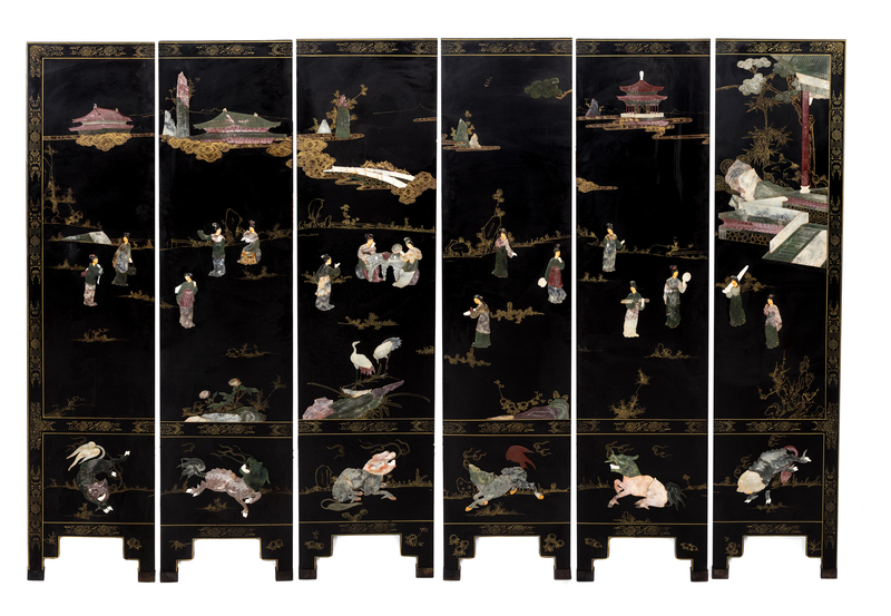 A Chinese Black Lacquer Six-Panel Floor Screen