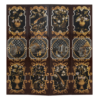 A Chinese Painted Lacquer Four-Panel Floor Screen