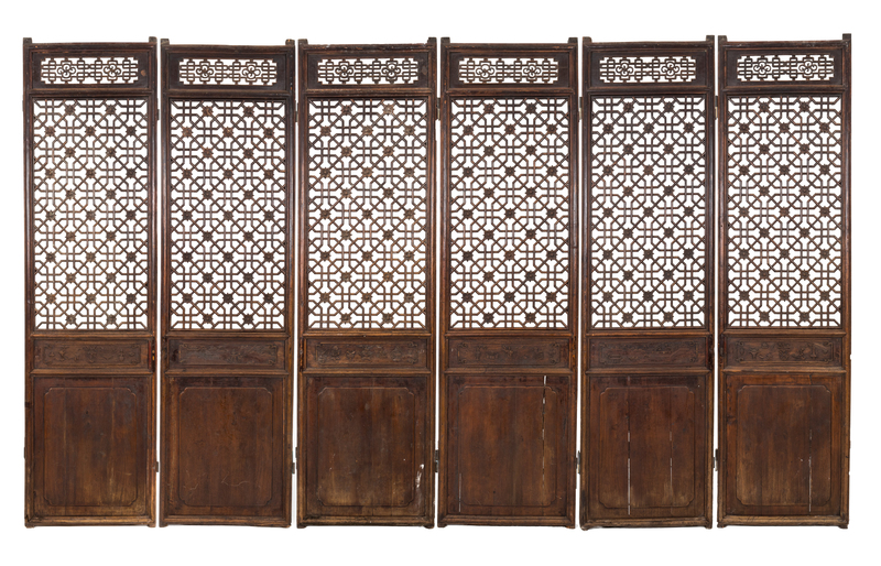 A Chinese Pierce-Carved Hardwood Six-Panel Floor Screen