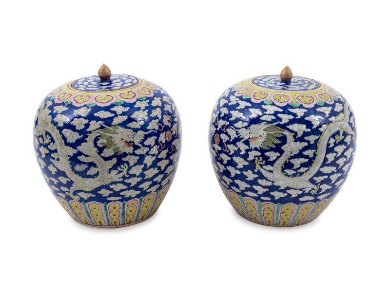 A Pair of Chinese Lidded Ginger Jars