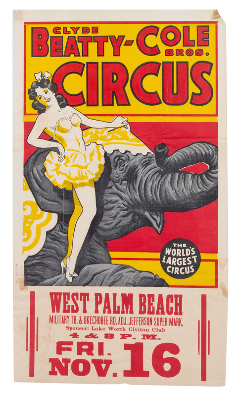 (CIRCUS) CLYDE BEATTY-COLE BROTHERS Sheet: 36 1/8 x 20 7/8 inches.