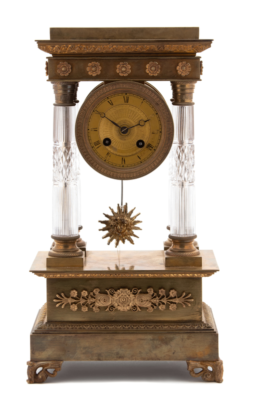A Charles X Gilt Bronze and Crystal Portico Clock