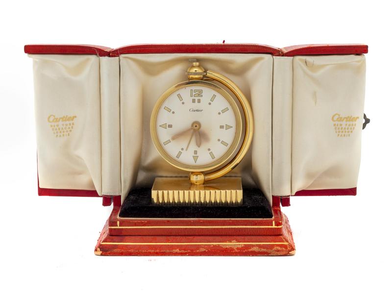 A Cartier Art Deco 18K Traveling Desk Clock