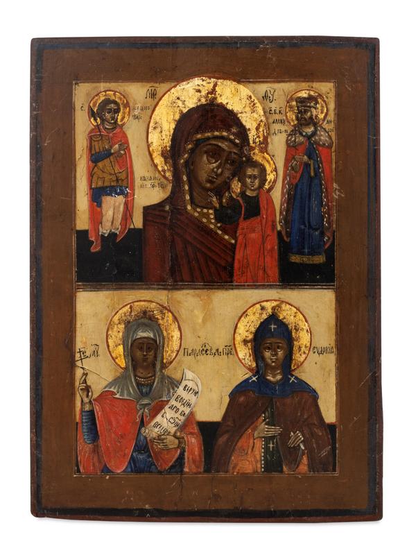 Russian Icon of The Mother of God Iverskaya and Two Female Saints
