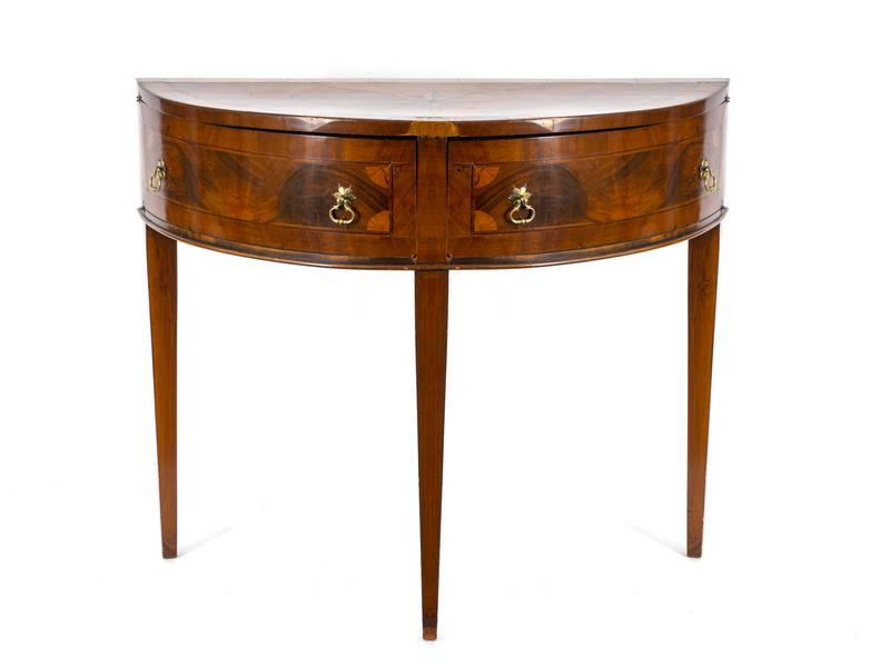A Northern Italian Inlaid Walnut Demilune Console Table