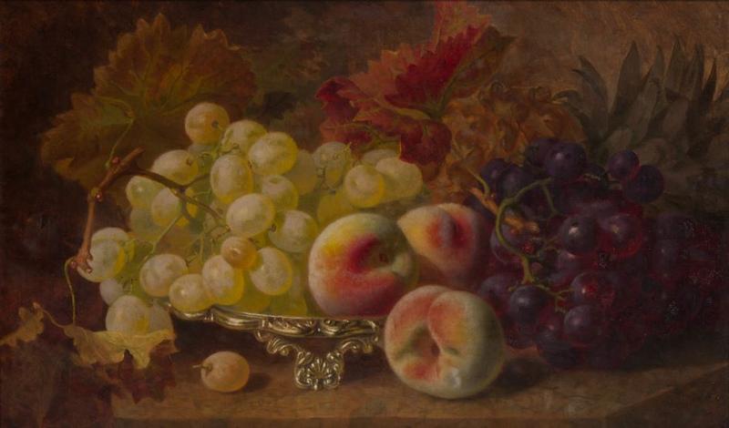 Autumn Leaves, Grapes and Peaches on Silver Salver
