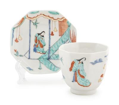 Lady in Pavillion, Kakiemon turquoise decoration, octagonal shape; raised anchor mark.
