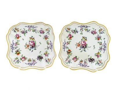 A Pair of Bristol Porcelain Square Dishes