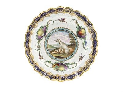 having a painting of two dogs in center painted by Geoffrey Hammett O'Neil; blue open crescent mark.