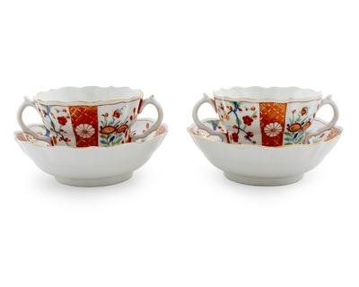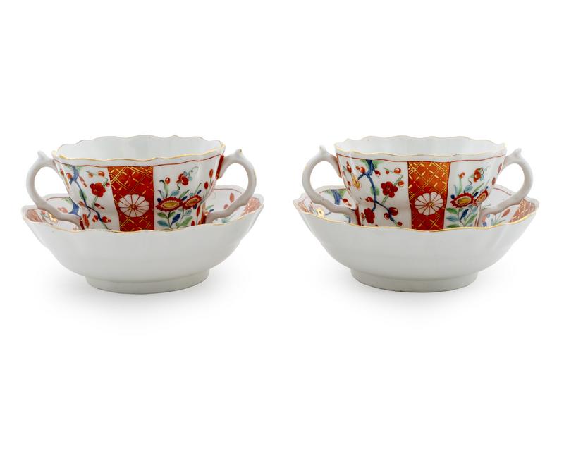 A Pair of Larger Worcester Porcelain Caudle Cups and Saucers
