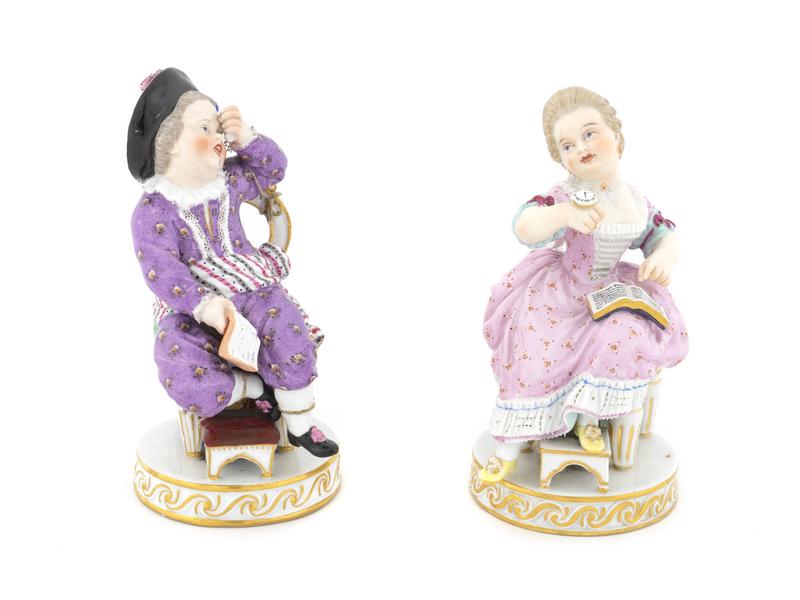 A Pair of Meissen Porcelain Figures of a Seated Boy and Girl