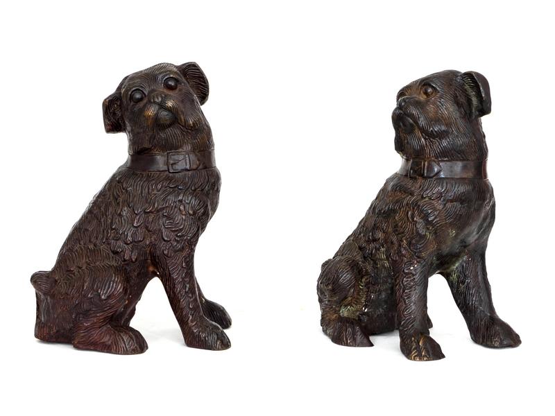 A Pair of Continental Patinated Bronze Figures of Seated Dogs