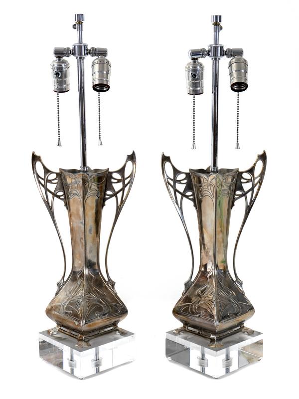 A Pair of Art Nouveau Style Silvered Metal Table Lamps
