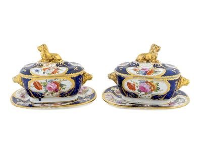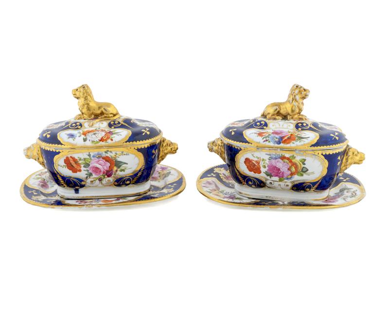 A Pair of Worcester Porcelain Covered Sauce Boats with Undertrays