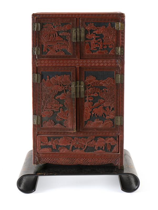 A Chinese Cinnabar Lacquer Kang Cabinet