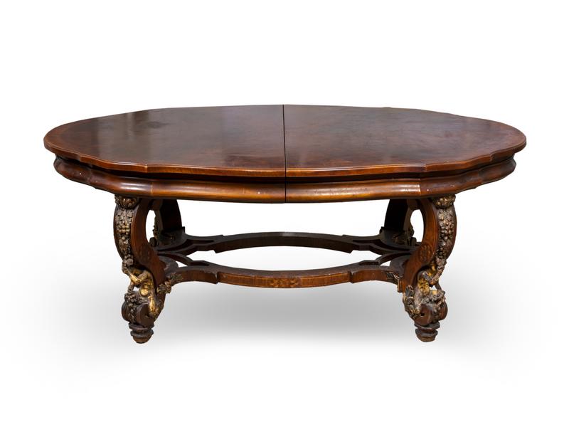 A Rococo Style Carved and Parcel Gilt Walnut Dining Table