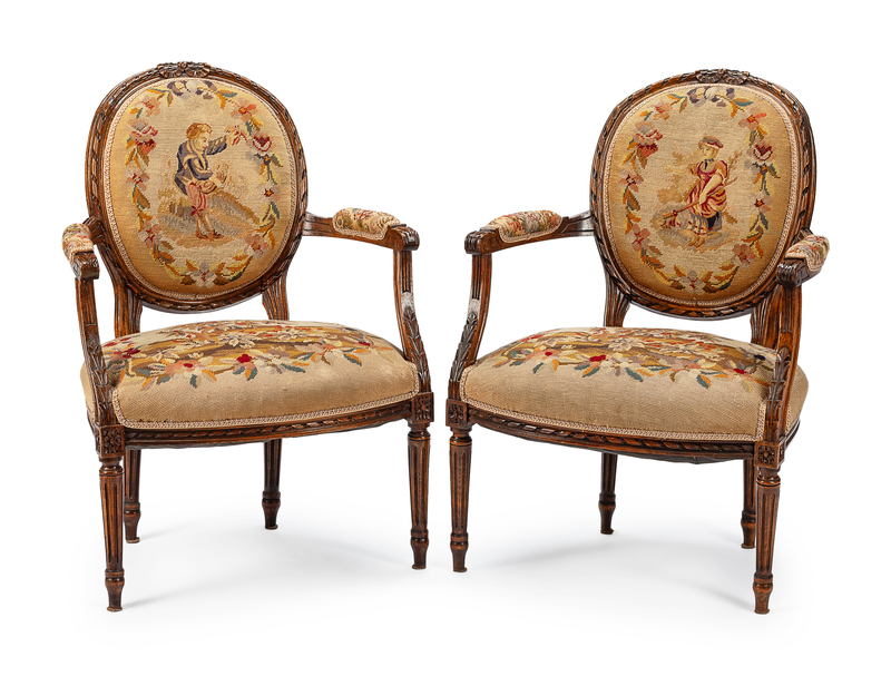 A Pair of Louis XVI Style Needlepoint-Upholstered Fauteuils