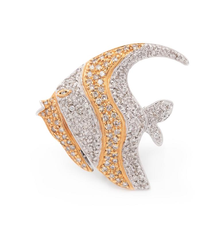 Containing numerous round brilliant cut diamonds weighing approximately 1.00 carat total. Mounted in bicolor gold.