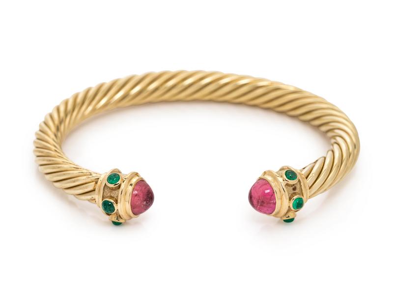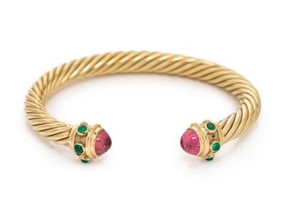 DAVID YURMAN, YELLOW GOLD AND GEMSTONE 'RENAISSANCE' CUFF BRACELET