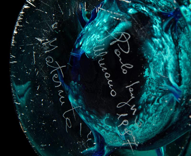 etched signature to lower edge