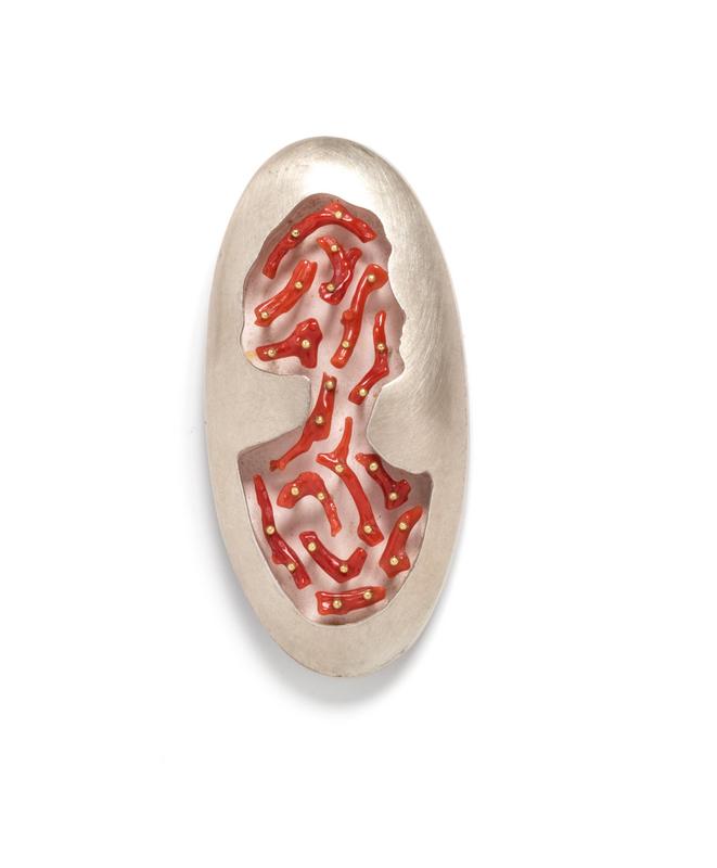 sterling silver, 18K yellow gold clasp, coral