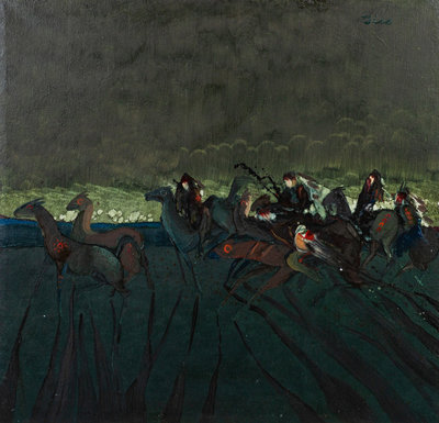 Horse Thieves, oil on canvas, signed Biss (upper right)