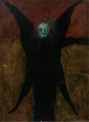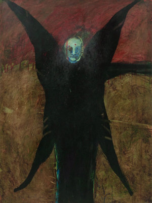 Untitled (Winged Figure), acrylic on paper, signed Scholder (lower left)