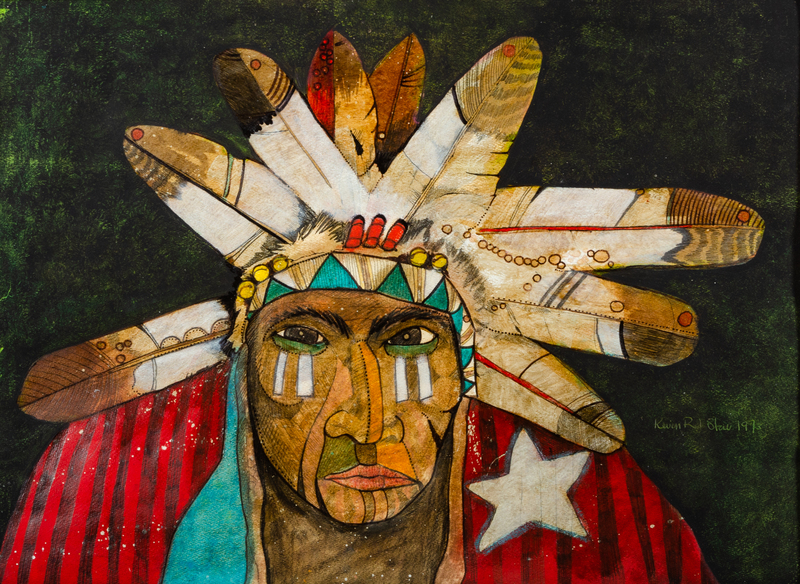 Crow Chief, oil on paper, signed and dated Kevin Red Star 73 (center right)