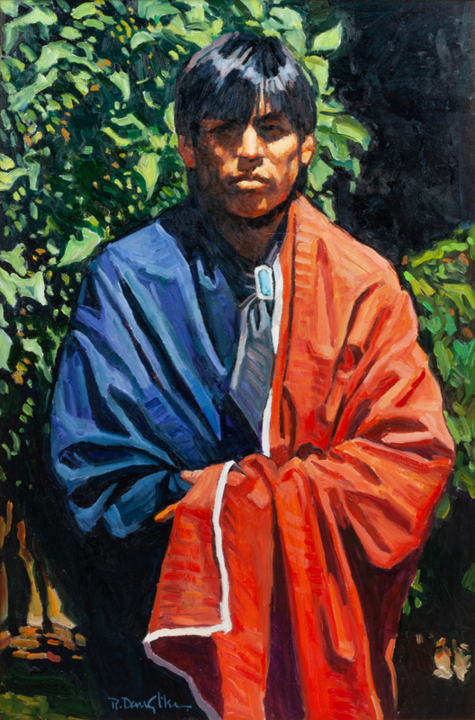 Tribal Robe, oil on canvas, signed R. Daughters (lower left)