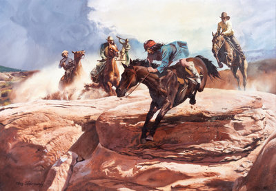 Exodus Horsethief, oil on canvas, signed Oleg Stavrowsky (lower left)