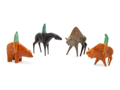 Group of Riders and Bison, bronze, each signed Tobey with edition number (bottom)