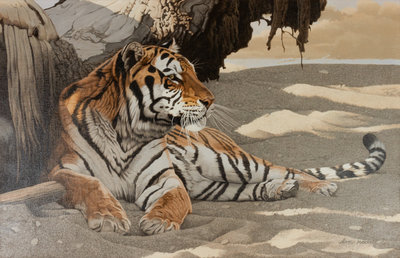 Siberian Tiger, acrylic on canvas, signed Don Rodell (lower right)