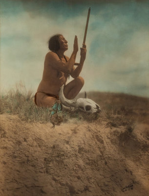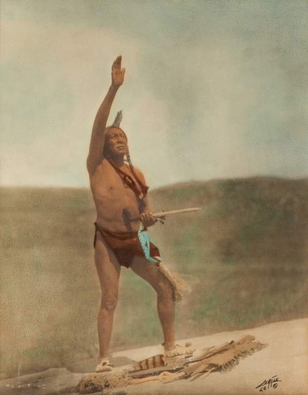 The Oath, Invocation and Prayer to the Great Mystery (triptych), group of three hand colored platinum prints, each signed Edward Curtis in ink (lower right)