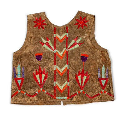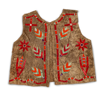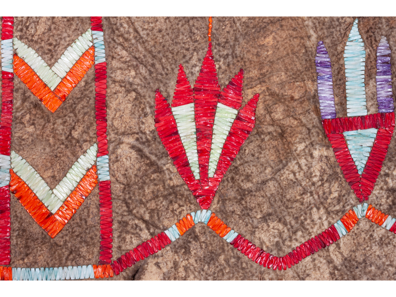 thread-sewn and quilled with crosses, flowers, and geometric elements