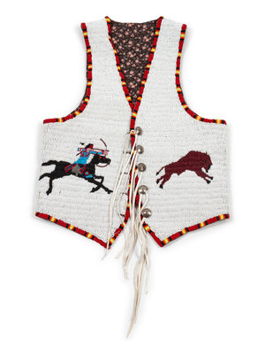 Sioux Beaded Hide Pictorial Vest, Buffalo Hunt