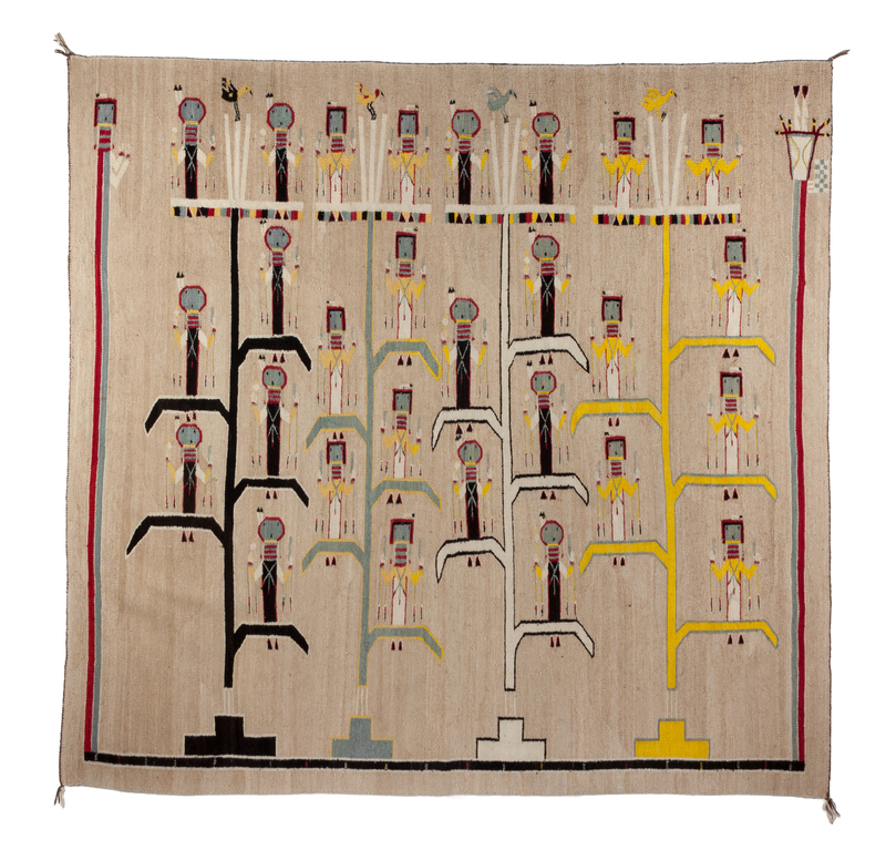 Corn with Holy People, from the Nightway Chant, sandpainting weaving