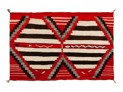 hand-spun wool, a bow and arrow and snake are integrated into the traditional design