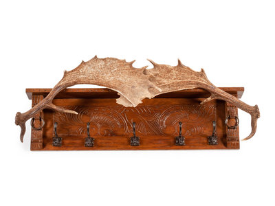 Victorian Style Carved Wood and Moose Paddle Hanging Coat Rack